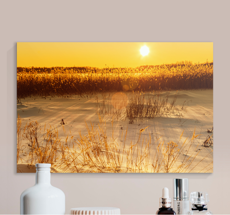 Die Wandbilder Landschaft goldener Sonnenaufgang sind die perfekte Wahl für Ihre Dekoration, da sie eine beruhigende Atmosphäre schaffen und jeden Raum mit einem Hauch von Eleganz erfüllen. Die lebendigen Farben und die sorgfältigen Details bringen die Schönheit der Natur direkt in Ihr Zuhause und geben jedem Raum Persönlichkeit und Wärme. Lassen Sie sich von der Magie des Sonnenaufgangs verzaubern und genießen Sie jeden Tag einen neuen Blick auf die Natur!