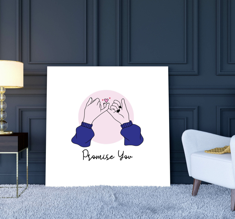 Referenz: Q6445Zwei Hände, die eine Versprechen-Geste ausführen, geschmückt mit einem Ring. Der Hintergrund zeigt einen sanften rosa Kreis und die Phrase 'Promise You' elegant darunter geschrieben. Dieses Design fängt das Wesen von Verpflichtung und Zuneigung ein und ist ein herzlicher Ausdruck von Liebe.
