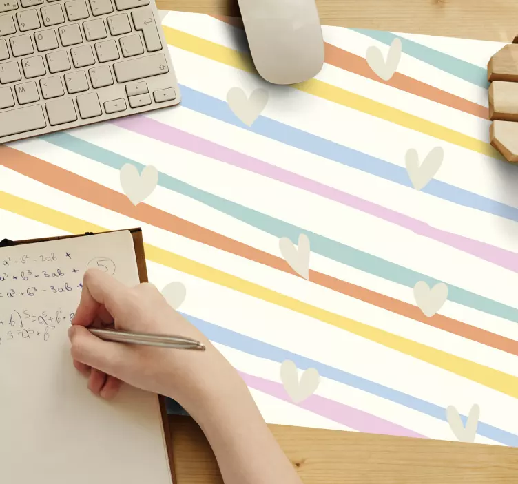 Das Mauspad Muster bunte Herzstreifen ist perfekt geeignet, um jedem Raum einen Hauch von Farbe und Freude zu verleihen. Seine lebendige Gestaltung macht es zu einem idealen Dekorationselement für Schreibtische, da es sowohl funktional als auch ästhetisch ansprechend ist. Lassen Sie sich von der verspielten Ausstrahlung inspirieren und bringen Sie frischen Wind in Ihre Büro- oder Gaming-Ecke!
