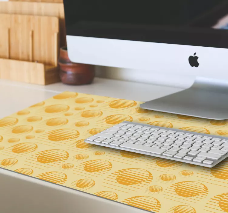 Erleben Sie die faszinierende Welt des Mauspad Muster kreisförmiges Texturmuster, das mit einem einzigartigen Design begeistert. Die grafische Darstellung umfasst eine lebendige Sonne, die sich harmonisch in ein abstraktes Muster einfügt, während Sonnenuntergänge und Linien eine beruhigende Atmosphäre schaffen. Die Kombination von Gelb und geometrischen Formen verleiht dem Produkt eine ansprechende Textur, die durch geschickte Kreise ergänzt wird. Diese Illustration wird Ihr Zuhause oder Büro auf eine kreative Weise aufwerten!