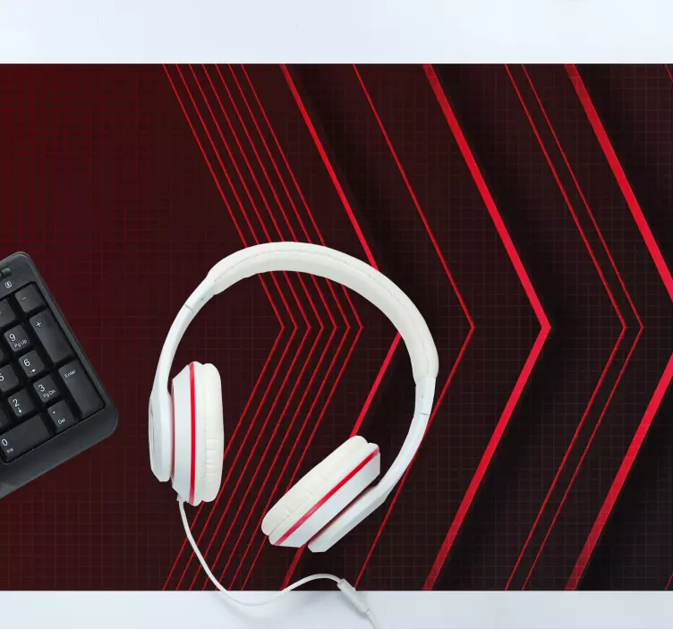 Das Mauspad Muster mit scharfen roten Linien besticht durch sein einzigartiges grafisches Design. Die Kombination aus geometrischen Formen und dynamischen Pfeilen in leuchtendem Rot vermittelt ein modernes und technisches Gefühl. Dieses abstrakte Design verleiht jedem Arbeitsplatz eine energiegeladene Atmosphäre, die sowohl Kreativität als auch Konzentration fördert.