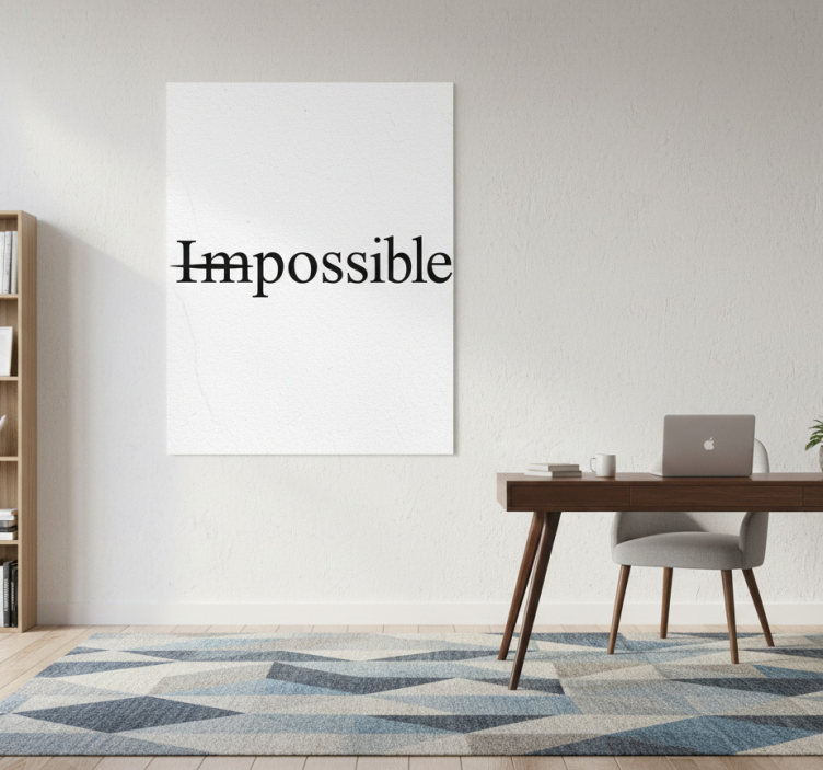 Referenz: G677Entdecken Sie unser einzigartiges Poster Büro nichts ist unmöglich, das mit einem faszinierenden Design begeistert. Dieses Poster besticht durch eine 180 g/m² Grammatur, die es ideal für Bürodekorationen macht. Das halbmattierte Finish sorgt dafür, dass keine störenden Reflexionen auftreten, während die hohe Farbintensität die Botschaft lebendig und inspirierend vermittelt. Perfekt für alle, die einen kreativen Platz schaffen möchten!
