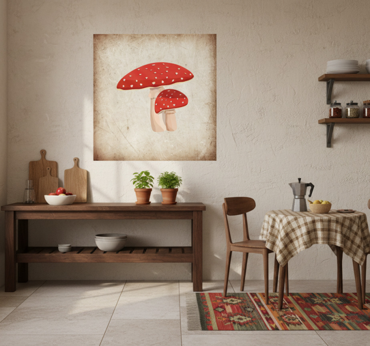 Das Poster Küche Amanita-Pilz Illustration ist nicht nur ein einfaches Wandbild, sondern ein Ausdruck von Stil und Ästhetik. Es verwandelt Ihre Küche in einen kreativen Raum, der sowohl inspirierend als auch einladend wirkt. Die harmonischen Farben und die detaillierte Darstellung des Amanita-Pilzes schaffen eine Atmosphäre, die zum Kochen und Genießen anregt. Lassen Sie Ihre Wände sprechen und verleihen Sie Ihrer Küche mit diesem einzigartigen Poster einen Hauch von Natur und Kunst!