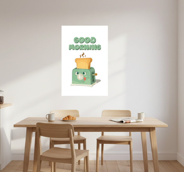 Referenz: G652Das Poster Küche Guten Morgen mit Toaster bringt einen fröhlichen und einladenden Charme in Ihre Küche. Mit lebendigen Farben und einem ansprechenden Motiv eines Toasters, der frisches Toastbrot zubereitet, wird dieses Design zum Blickfang in jedem Küchenraum. Die hohe Farbintensität und das halbmattierte Finish sorgen dafür, dass das Poster auch bei unterschiedlichen Lichtverhältnissen strahlt und keine Reflexionen erzeugt, wodurch es immer perfekt zur Geltung kommt.