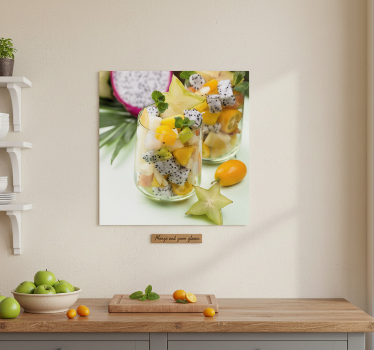 Referenz: G598Entdecken Sie die faszinierende Welt der Poster Küche mango und grüne gläser, die Ihre Räume mit einem frischen und lebendigen Design bereichert. Dieses Poster verleiht jedem Raum einen Hauch von Exotik und Frische, indem es die leuchtenden Farben einer saftigen Mango und die eleganten grünen Gläser in einem harmonischen Zusammenspiel präsentiert. Die hohe Farbintensität und das halbmattierte Finish ohne Reflexionen sorgen dafür, dass die Farben lebendig und ansprechend bleiben, während das 180 g/m² schwere Papier die ideale Grundlage für ein hochwertiges Poster bietet.