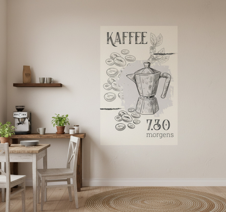 Das Poster Küche mit Kaffee-Muster ist die perfekte Wahl für jeden, der seine Küche mit einem Hauch von Stil und Persönlichkeit dekorieren möchte. Es bringt nicht nur Farbe in den Raum, sondern vermittelt auch eine einladende und gemütliche Atmosphäre, die zum Verweilen einlädt. Dieses Poster inspiriert und schafft eine Verbindung zu den täglichen Kaffeeritualen, wodurch Ihre Küche zu einem Ort wird, an dem sich Familie und Freunde gerne treffen!