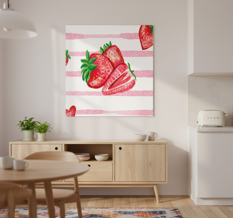 Das Poster Küche nahtlose erdbeeren auf gestreiftem hintergrund ist eine hervorragende Wahl, um Ihrer Küche eine fröhliche Note zu verleihen! Die Kombination aus frischen Erdbeeren und einem modernen Streifenmuster zieht alle Blicke auf sich und bringt Freude in den Alltag. Es ist eine kreative Möglichkeit, um Ihre Wände zu verschönern und gleichzeitig eine gemütliche Atmosphäre zu schaffen. Mit diesem Poster können Sie ganz einfach ein geschmackvolles Ambiente kreieren, das sowohl Gäste als auch Familienmitglieder begeistert!