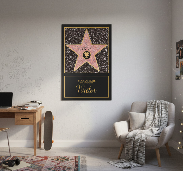 Das Poster Wohnzimmer individuelle ruhmesstern ist eine inspirierende Wahl für Ihre Wohnraumgestaltung. Es verleiht Ihrem Wohnzimmer nicht nur eine persönliche Note, sondern schafft auch eine einladende Atmosphäre, die Ihre Gäste begeistern wird. Seine lebendigen Farben und das ansprechende Design ziehen alle Blicke auf sich und setzen stilvolle Akzente, die Ihr Zuhause aufwerten.
