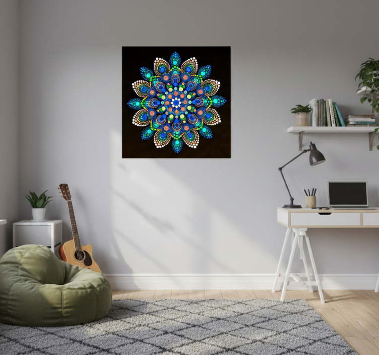 Das Poster Wohnzimmer Mandala bunte Punkte ist die perfekte Wahl, um Ihrem Wohnraum eine lebendige Note zu verleihen! Es zieht die Blicke auf sich und schafft eine einladende Atmosphäre, die sowohl für Entspannung als auch für kreative Inspiration sorgt. Die harmonische Kombination aus Mandala-Design und kräftigen Farben lässt sich ideal mit verschiedenen Einrichtungsstilen kombinieren, wodurch es ein unverzichtbares Element für jede Wohnung wird!