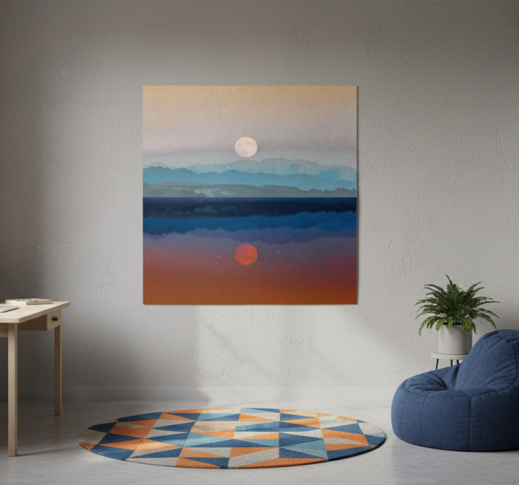 Das Poster Wohnzimmer mit wunderschönem Monddesign ist die perfekte Wahl, um Ihrem Raum eine besondere Note zu verleihen. Es inspiriert mit seiner ruhigen Ausstrahlung und bringt eine harmonische Stimmung in Ihr Zuhause. Dieses Poster ist nicht nur ein einfacher Wandschmuck, sondern ein Kunstwerk, das Gespräche anregt und Ihre Gäste begeistert! Verleihen Sie Ihrem Wohnzimmer mit diesem beeindruckenden Poster einen Hauch von Eleganz und Stil!