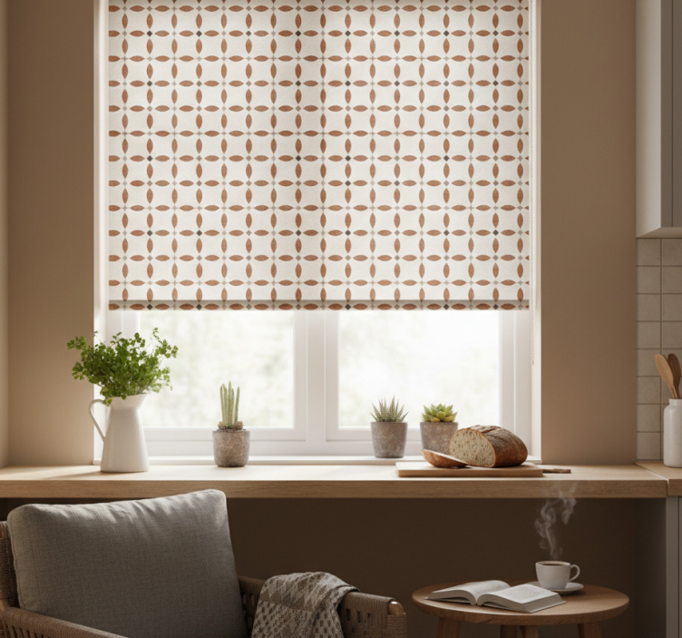 Küchenfenster rollo mit beigem geometrischem muster