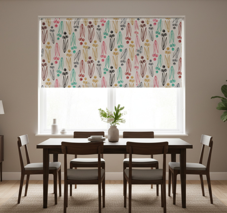 Rollo fenster esszimmer mit buntem abstraktem blumenmuster