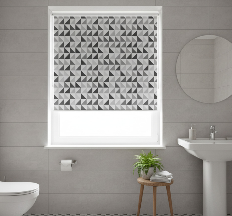 Rollo fenster grau mit geometrischen dreiecken