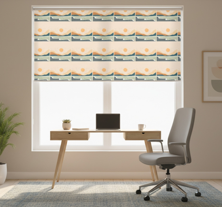 Das Rollo Fenster Home Office rollo fenster home office abstrakte sonnenuntergang berge ist nicht nur eine Augenweide, sondern auch eine praktische Lösung für Ihr Zuhause. Es schützt vor direkter Sonneneinstrahlung und bietet gleichzeitig Privatsphäre, wenn Sie es im abgesenkten Zustand verwenden. Mit diesem Rollo können Sie die Raumtemperatur regulieren und die Sicherheit Ihres Hauses erhöhen, da Sie gut sehen können, ohne gesehen zu werden. Zudem verbessert es die gesamte Dekoration Ihres Raumes und verleiht ihm einen individuellen Charakter. Machen Sie Ihr Zuhause zu einem stilvollen Rückzugsort!