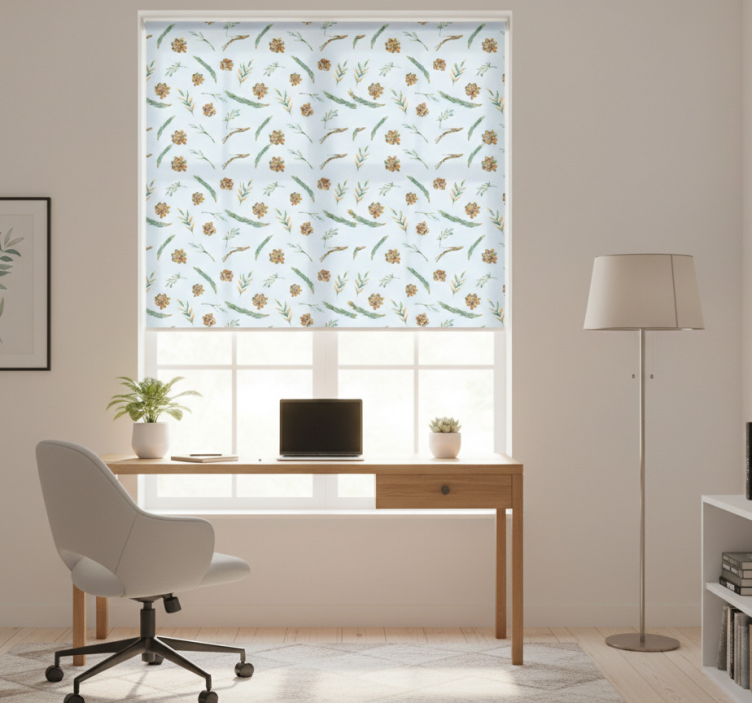 Rollo fenster home office aquarell blumen blau