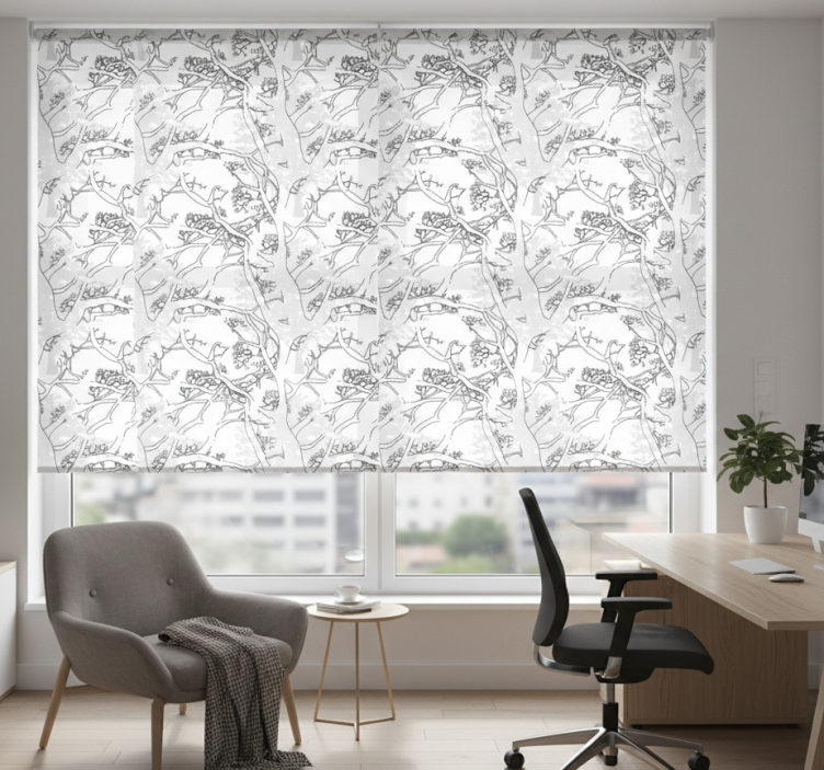 Referenz: E7363Das Rollo Fenster Home Office dunkle Baumäste besticht durch sein einzigartiges Design, das die natürliche Schönheit dunkler Baumäste in einem grafischen Muster einfängt. Dieses stilvolle Rollo verleiht jedem Raum eine harmonische Atmosphäre und ist perfekt für Ihr Home Office geeignet. Sein elegantes Aussehen ergänzt Ihre Einrichtung und sorgt gleichzeitig für eine angenehme Lichtregulierung und Privatsphäre.