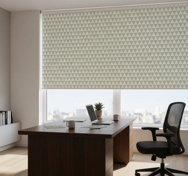 Referenz: E7247Entdecken Sie das stilvolle Rollo Fenster Home Office graue Dreiecke, das Ihre Räume mit einem einzigartigen grafischen Design aufwertet. Die eleganten grauen Dreiecke auf einem hellen Hintergrund verleihen Ihrem Home Office eine moderne und ansprechende Atmosphäre. Dieses Rollo ist nicht nur ein funktionales Element, sondern auch ein echter Hingucker, der Ihr Raumkonzept perfekt ergänzt und zusätzlich mit einfacher Montage und Reinigung überzeugt.