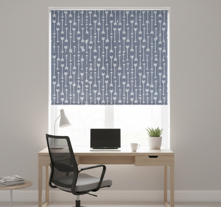 Rollo fenster home office mit minimalistischen pfeilstreifen