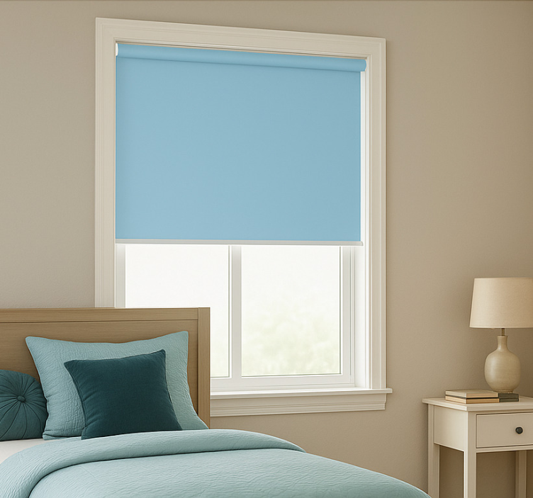 Rollo Fenster Jugendzimmer himmelblaue farbe