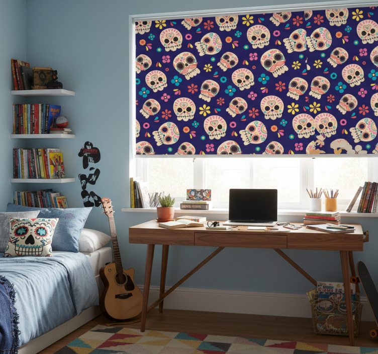 Rollo fenster jugendzimmer mexikanische totenköpfe
