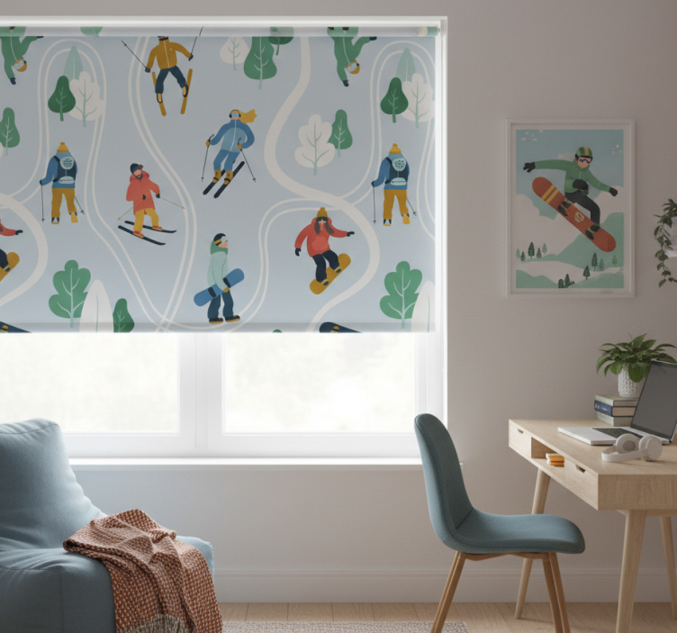 Referenz: E7581Entdecken Sie unser einzigartiges Rollo Fenster Jugendzimmer blaues skifahren sport, das mit einem fröhlichen und dynamischen Design begeistert! Die lebendigen Blautöne und die sportlichen Skifahrer-Motive bringen eine frische und energiegeladene Atmosphäre in jedes Jugendzimmer. Dieses Rollo kombiniert Funktionalität und Stil und ist somit die perfekte Wahl für jeden, der ein sportliches und modernes Ambiente schaffen möchte. Die einfache Montage mit 2 Klicks sorgt dafür, dass Sie im Handumdrehen Freude an Ihrem neu gestalteten Raum haben!
