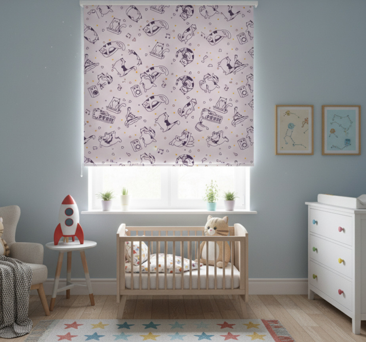 Das Rollo Fenster Kinderzimmer Katzenmusikband Muster ist mehr als nur ein Sichtschutz; es ist ein kreatives Element, das den Raum Ihres Kindes verzaubert. Mit diesem einzigartigen Rollo schaffen Sie eine lebendige Umgebung, die die Fantasie anregt und Freude bereitet. Es passt perfekt zu jeder Kinderzimmereinrichtung und ist gleichzeitig funktional, da es die Privatsphäre gewährleistet und den Raum vor übermäßiger Sonneneinstrahlung schützt. Verleihen Sie dem Kinderzimmer den besonderen Touch, den es verdient!