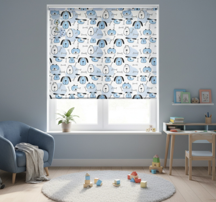 Rollo fenster kinderzimmer mit blauem hundeflussmuster