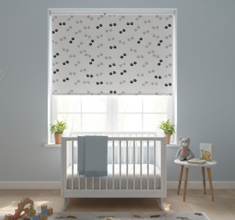 Rollo fenster kinderzimmer mit katzenpfoten-motiven