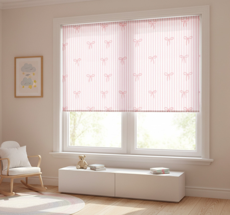 Rollo fenster kinderzimmer mit rosa streifen und schleifen