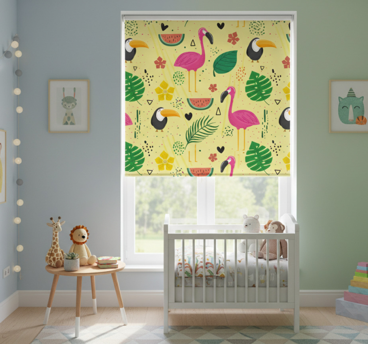 Rollo fenster kinderzimmer niedliche tiere mit pflanzen