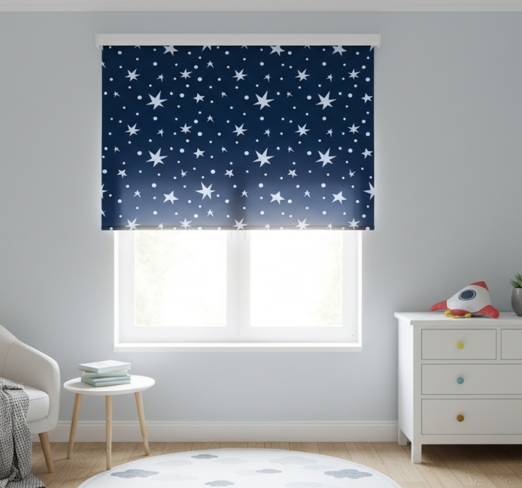 Referenz: E7200Entdecken Sie unser Rollo Fenster Kinderzimmer Sterne auf marineblau, das mit seinem traumhaften Design ein wahres Highlight für jedes Kinderzimmer darstellt. Die leuchtenden Sterne auf dem tiefblauen Hintergrund schaffen eine bezaubernde Atmosphäre und laden zum Träumen ein. Dieses Rollo kombiniert Funktionalität mit einem ansprechenden Look und bietet eine einfache Montage mit nur 2 Klicks. Es lässt sich mühelos reinigen und sorgt dafür, dass Ihr Raum vor direkter Sonneneinstrahlung geschützt ist.