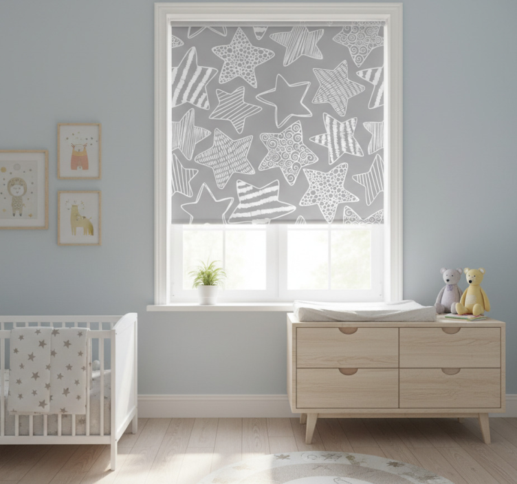 Referenz: E7239Entdecken Sie unser charmantes Rollo Fenster Kinderzimmer weiße Sterne, das mit einem zauberhaften Sternenmuster begeistert und Ihrem Kinderzimmer einen Hauch von Magie verleiht. Die zarten weißen Sterne auf einem sanften Hintergrund schaffen eine einladende Atmosphäre und tragen dazu bei, dass sich Ihr Kind wohlfühlt. Dieses Rollo bietet nicht nur eine stilvolle Dekoration, sondern erfüllt auch praktische Funktionen, die das Leben erleichtern.