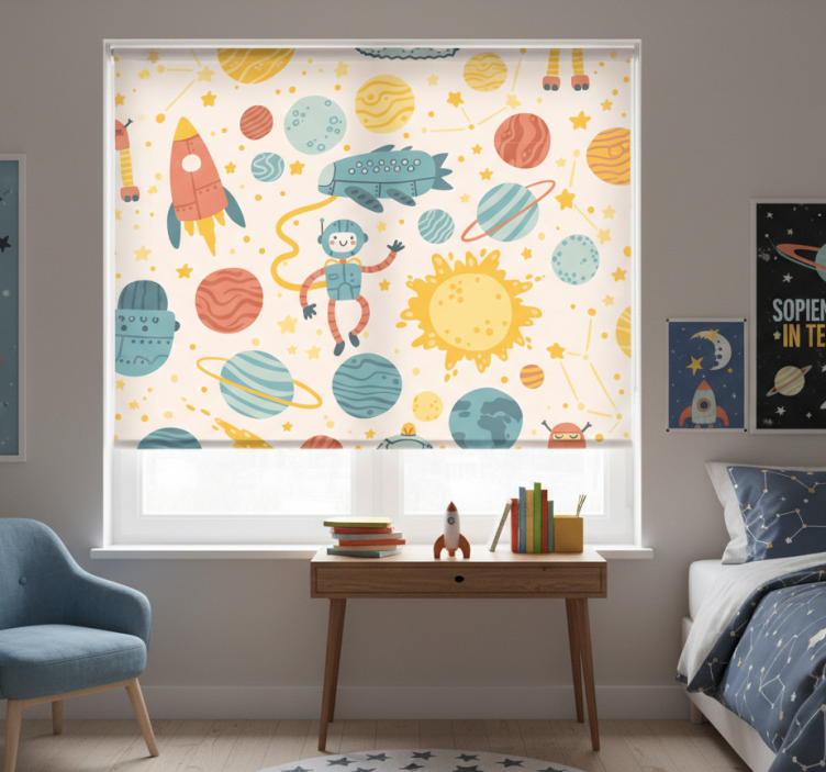 Rollo fenster kinderzimmer weltraumabenteuer szene