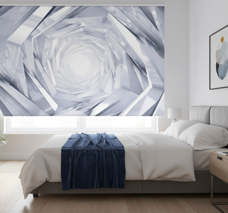 Rollo fenster weiß mit abstraktem geometrischen tunnel
