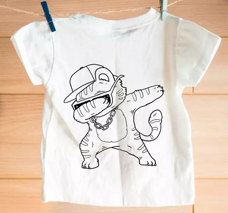 Referenz: T5146Dieses Design zeigt eine niedliche Katze, die Sonnenbrillen und eine Mütze trägt und eine lustige sowie trendige Atmosphäre ausstrahlt. Der Cartoon-Stil betont die Verspieltheit und macht es perfekt für Kinder. Hell und ansprechend hebt sich dieses Stück mit seinem einzigartigen Charakter und jugendlichen Charme hervor.