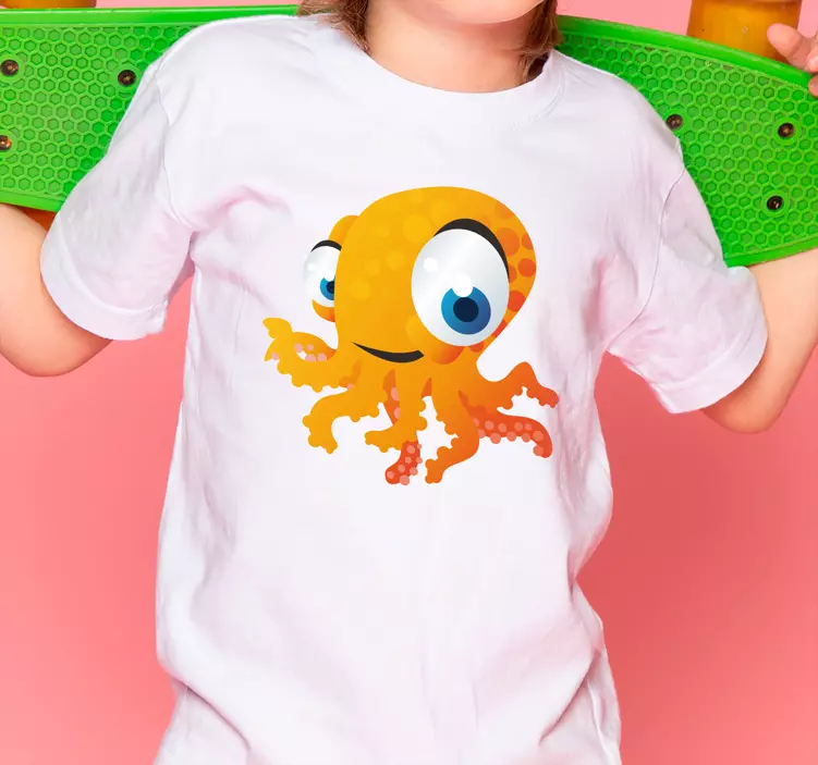 Entdecken Sie unser Kinder T Shirt mit fröhlichem Oktopus Charakter, das mit einem verspielten und bunten Design begeistert! Die liebevolle Karikatur eines freundlichen Oktopus ziert die Vorderseite und bringt Freude in den Alltag Ihrer Kleinen. Die Illustration vermittelt ein Gefühl von Abenteuer und Fantasie und ist perfekt für kleine Entdecker. Dieses T-Shirt ist nicht nur ein echter Hingucker in der Kindermode, sondern auch ein Ausdruck von Lebensfreude!