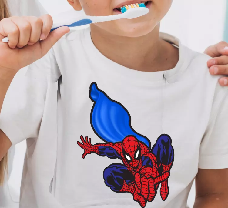 Entdecken Sie das Kinder T Shirt Spiderheld Abenteuer, das mit einem lebhaften Design begeistert! Dieses T-Shirt bringt die aufregende Welt der Comics zu den Kleinen mit einer fesselnden Illustration eines mutigen Helden, der mit seinem blauen Umhang durch die Luft fliegt. Die verspielte Darstellung einer Spinne und die actionreiche Komposition sorgen für jede Menge Spaß und regt die Fantasie der Kinder an!