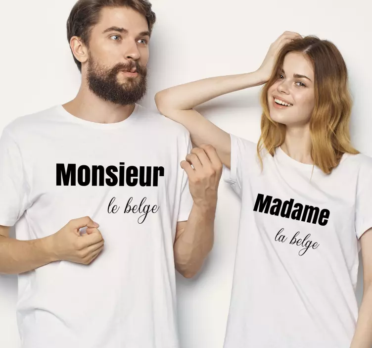Referenz: T5378Diese stilvolle Bekleidung zeigt ein charmantes Paar in passenden Outfits. Jedes Shirt trägt einzigartigen Text in kontrastierenden Schriftarten, was ihr verspieltes und modisches Erscheinungsbild unterstreicht. Das einfache, aber effektive Design fördert ein Gefühl der Zusammengehörigkeit und ist perfekt für Paare, die ihre Bindung feiern möchten.