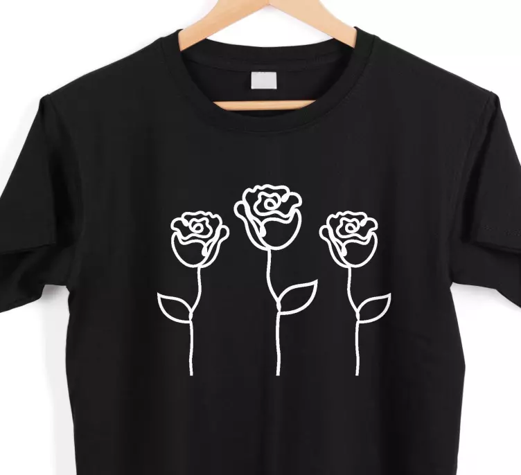 Referenz: T4404Dieses stilvolle Stück zeigt drei elegant skizzierte Rosen, die eine minimalistische Ästhetik verkörpern. Der schwarze Stoff dient als perfekter Hintergrund und hebt die filigrane Linienkunst in Weiß hervor. Ideal für Blumenliebhaber, die einen modernen Akzent in ihrer Garderobe suchen.