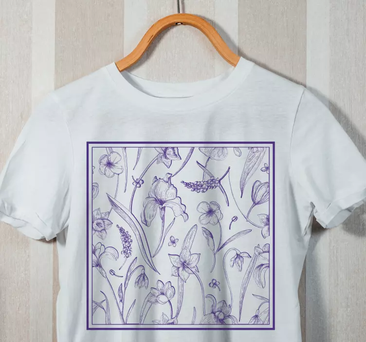 Entdecken Sie unser Original T Shirt mit botanischem motiv, das durch ein atemberaubendes Design besticht. Die grafische Darstellung zeigt lebendige Krokusse in violett und lila, die harmonisch auf einem stilvollen Musterhintergrund angeordnet sind. Dieses Blumenmotiv bringt die Schönheit der Natur auf Ihr Shirt und sorgt für einen frischen, floralen Look. Die künstlerische Illustration und das geschickte Skizzieren der Blumen machen jedes T-Shirt zu einem einzigartigen Kunstwerk!