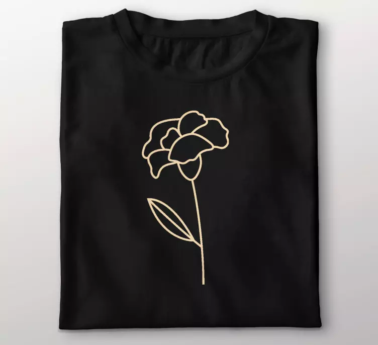 Entdecken Sie das Original T Shirt mit einzelblumenumriss, das durch sein minimalistisches Design besticht. Die feinen Strichzeichnungen einer eleganten Blume in Gold auf einem edlen schwarzen Hintergrund verleihen diesem T-Shirt einen einzigartigen Charme. Es ist die perfekte Kombination aus Stil und Raffinesse und wird sicherlich zum Blickfang in Ihrer Garderobe!