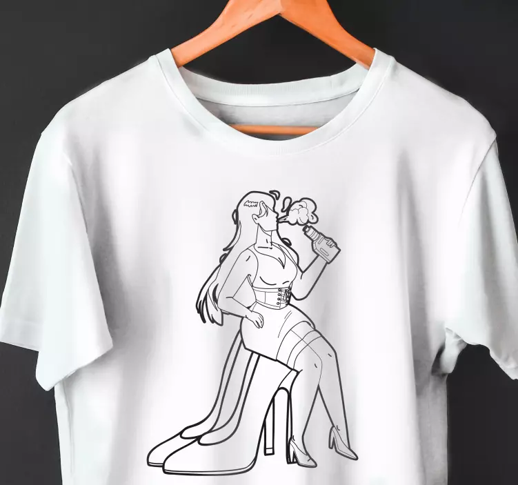 Entdecken Sie das Original T Shirt mit stylischem high heel flair, das durch ein einzigartiges handgemaltes Design besticht. Die elegante Silhouette einer Frau und die kunstvoll skizzierten High Heels strahlen Selbstbewusstsein und Stil aus. Diese Illustration vermittelt ein Gefühl von Dampfen und Rauchen, was das T-Shirt zu einem besonderen Modehighlight macht. Perfekt für Cocktailevents und entspannte Abende eignet es sich ideal für modebewusste Frauen!