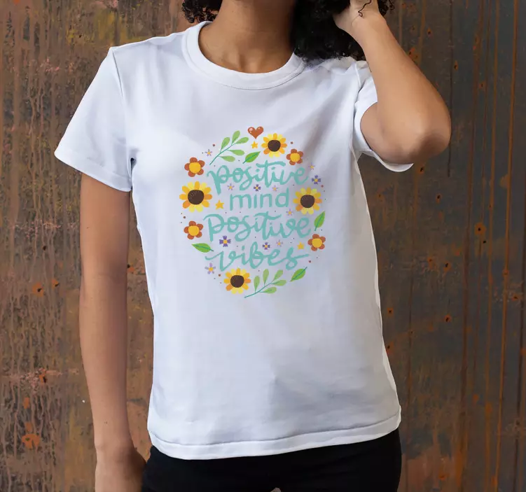 Referenz: T4684Dieses Design zeigt lebendige Sonnenblumen und fröhlichen Text, der eine positive Denkweise fördert. Die Kombination aus bunten Elementen symbolisiert Freude und Ermutigung, was es perfekt für aufmunternde Botschaften macht. Sein verspielter Stil zieht Aufmerksamkeit auf sich und inspiriert Positivität und Achtsamkeit.