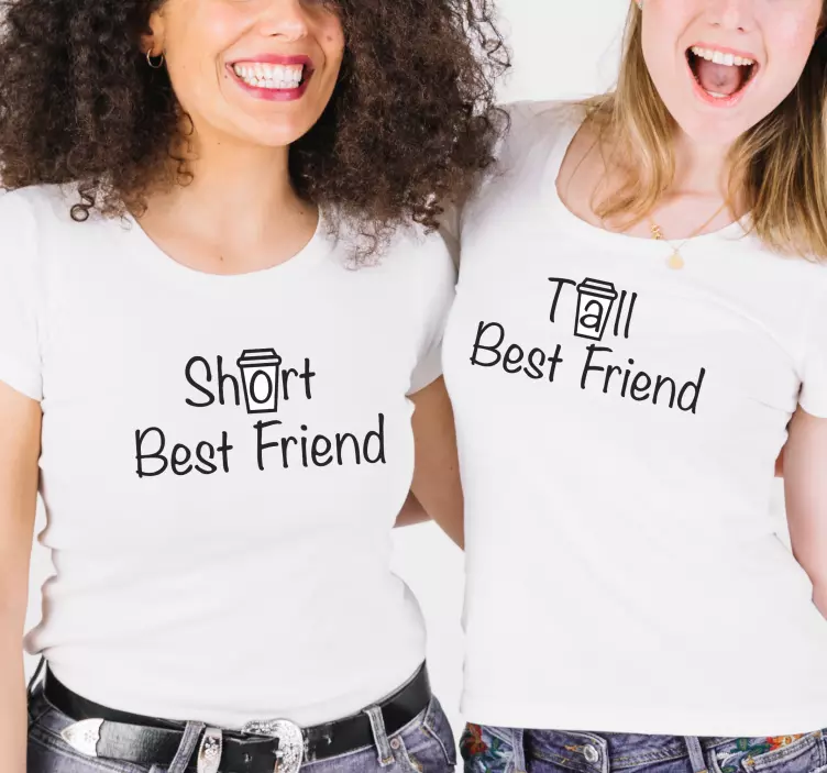 Entdecken Sie die perfekten Pärchen T Shirts beste freunde duo, die nicht nur Ihre Freundschaft, sondern auch Ihren Humor widerspiegeln! Diese T-Shirts sind in einem frischen Weiß gestaltet und bieten ein einzigartiges Design, das kurze, witzige Texte über Freundschaft und Kaffee enthält. Sie sind ideal für unvergessliche Momente im Cafe oder einfach nur zum Chillen zu Hause. Tragen Sie diese passenden Hemden und zeigen Sie der Welt, wie eng Ihre Beziehung ist!