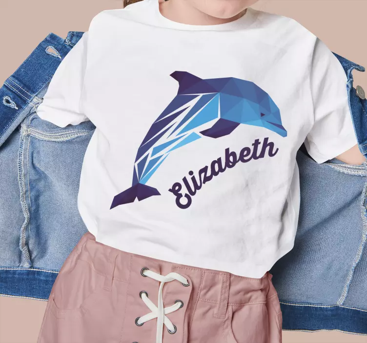 Referenz: T4981Dieses lebendige Design zeigt einen stilisierten geometrischen Delfin, der Verspieltheit und Freude symbolisiert. Der zentral platzierte Name darunter verleiht eine persönliche Note und macht es perfekt für kleine Kinder. Die kühlen Blautöne verstärken das lebhafte Erscheinungsbild und machen es für verschiedene lässige Anlässe geeignet.