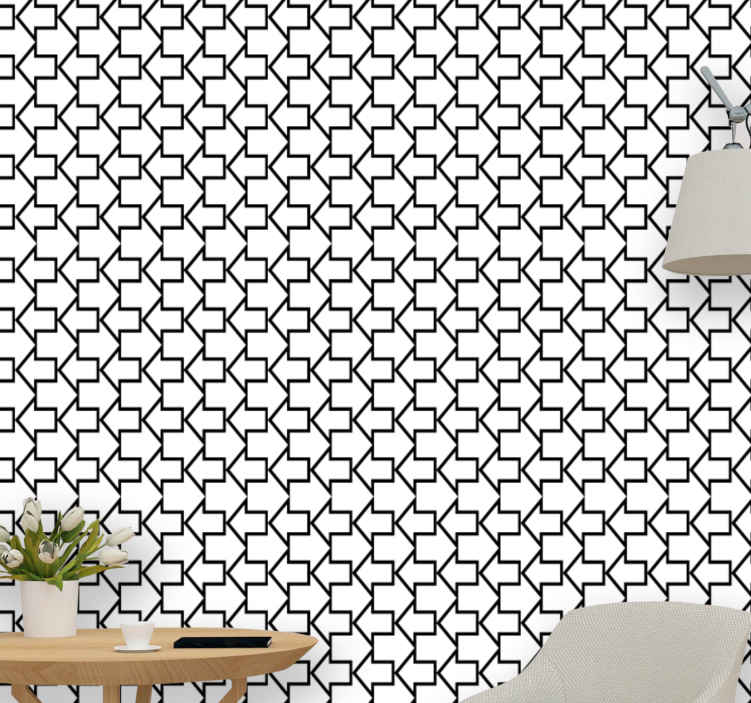 Entdecken Sie die faszinierende Welt der Tapete geometrisch richtungspfeilmuster, die mit ihrem einzigartigen Design aus klaren Linien und dynamischen Pfeilen bestechen kann. Diese Tapete in Schwarz und Weiß bringt eine moderne Note in jeden Raum und erzeugt eine harmonische Verbindung zwischen Geometrie und Eleganz. Die auffälligen Muster sorgen für einen ansprechenden Blickfang, der Ihre Wände zum Leben erweckt und jedem Raum eine besondere Atmosphäre verleiht!