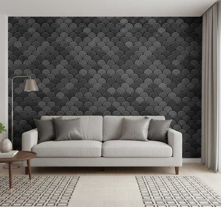 Referenz: P12472Entdecken Sie die atemberaubende Tapete Wohnzimmer mit schwarzen Schuppen, die Ihrem Raum einen modernen und stilvollen Look verleiht. Das grafische Design dieser Vliestapete beeindruckt durch matte Farben und eine einzigartige Textur, die an elegante Schuppen erinnert. Diese Tapete wird schnell zum Highlight in Ihrem Wohnzimmer und schafft eine harmonische Atmosphäre, die sowohl für Entspannung als auch für gesellige Abende geeignet ist!