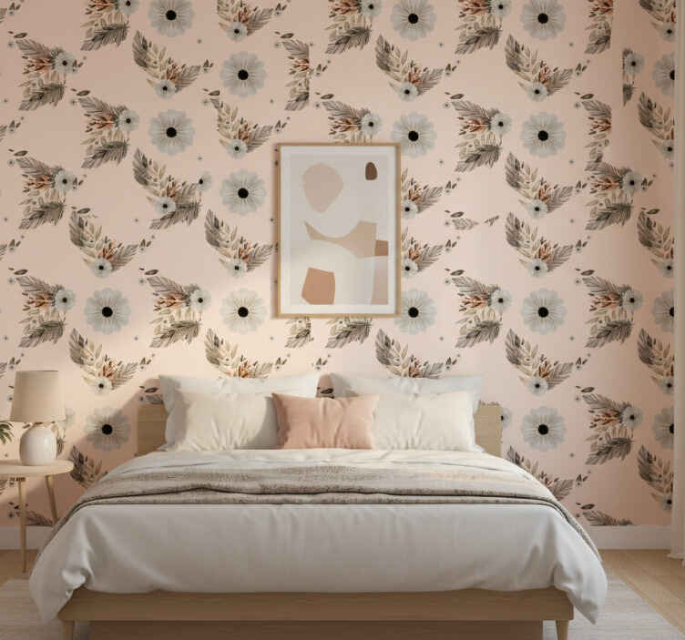 Tapeten schlafzimmer mit rosa und schwarzen pastellblumen