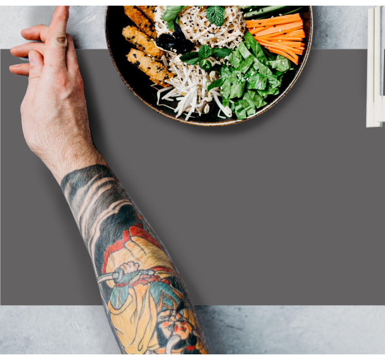 Entdecken Sie unser einzigartiges Tischset Textur für Schalenanordnung, das in einem eleganten grauen Farbton gestaltet ist. Dieses einfarbige Design kombiniert die Ästhetik von Lebensmitteln mit einem künstlerischen Touch, der an Tätowierungen erinnert. Die Textur sorgt für ein ansprechendes visuelles Erlebnis und eignet sich perfekt für die Präsentation von Gemüse und Nudeln. Jedes Set wird mit einer liebevollen Handarbeit hergestellt, um Ihnen ein Produkt von höchster Qualität zu bieten.