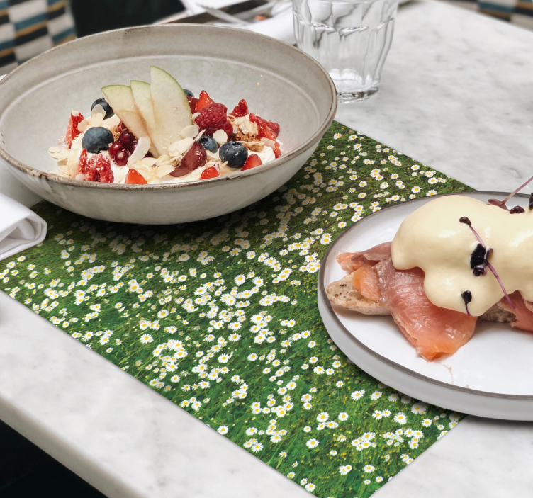 Erleben Sie die Schönheit der Natur mit unserem Tischset Textur mit frischem Blumenmuster. Dieses bezaubernde Design bringt die Farben einer blühenden Wiese direkt auf Ihren Tisch und verwandelt jede Mahlzeit in ein festliches Erlebnis. Die lebendigen Gänseblümchen und das sanfte Grün vermitteln ein Gefühl von Frische, als ob Sie sich in einem blühenden Garten befinden. Die floralen Elemente sind harmonisch angeordnet und schaffen eine einladende Atmosphäre für jede Gelegenheit!